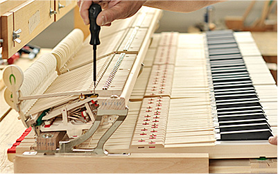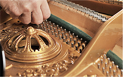 整音:在增強(qiáng)鋼琴泛音的部分,我們采用德國的整音方法,不添加任何化學(xué)材料,使用天然羊毛,運(yùn)用純手工扎針技術(shù)調(diào)整榔頭的硬度,讓每個(gè)音產(chǎn)生更多的泛音,持續(xù)時(shí)間達(dá)10s以上。
