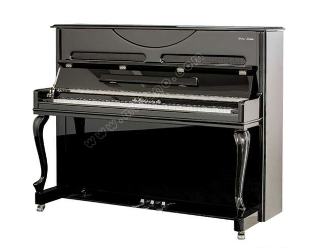 - 該款琴為經(jīng)典的黑色亮光琴身,倒半月型上門板,配以專業(yè)音箱布發(fā)音窗,弧形花紋雕刻“虎爪”琴腿,巧妙的采用東方古典家具原素,整體外形東西文化兼容,典雅端莊又不顯沉悶。 本款鋼琴是由“當(dāng)代李斯特”美稱的德國門德爾松鋼琴簽約藝術(shù)家弗拉基米爾·莫吉列夫斯基大師親自定音并簽名的高端藝術(shù)佳作