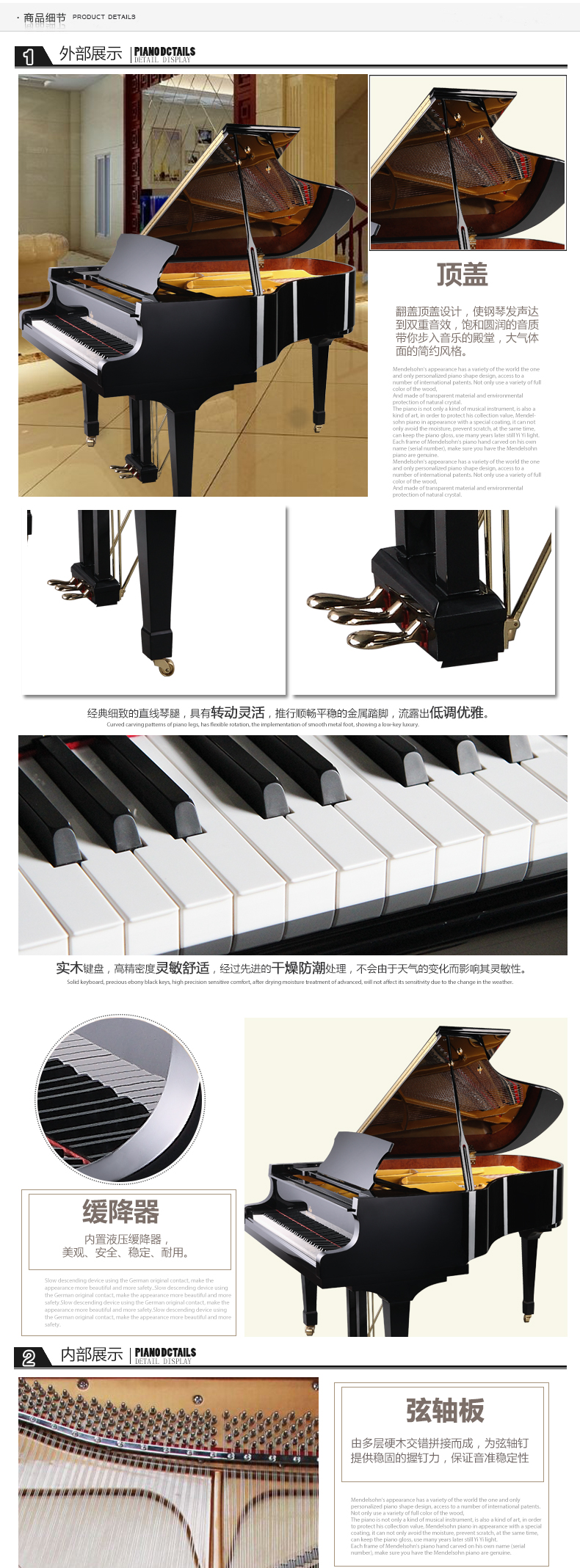 6.鍵盤(pán):歐洲白松實(shí)木鍵盤(pán),不易開(kāi)裂變形,具有很好的觸感