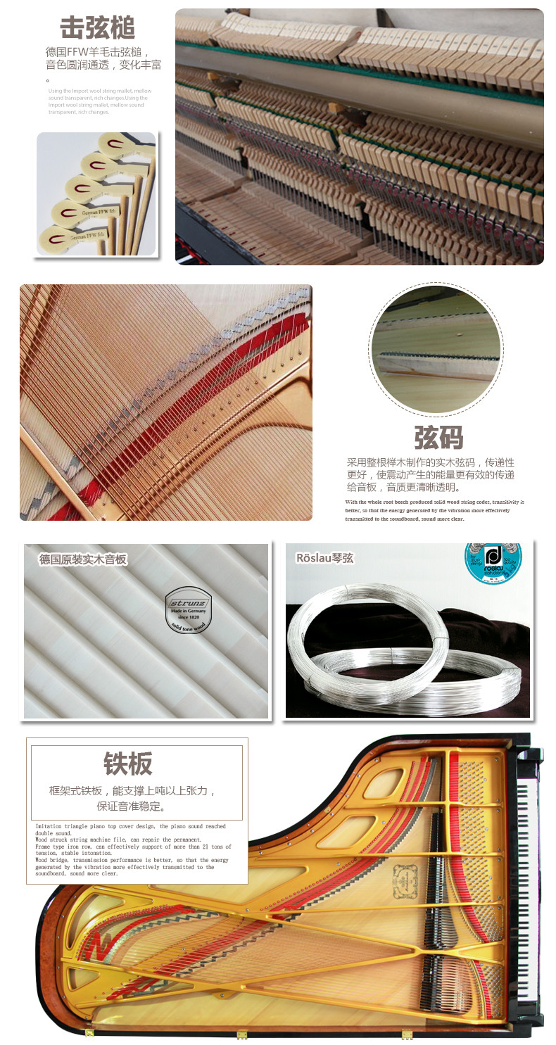 9.弦軸板:采用德國(guó)帝豪尼特(dehonit)進(jìn)口弦軸板,密度大,受力均勻,穩(wěn)定性更強(qiáng)
