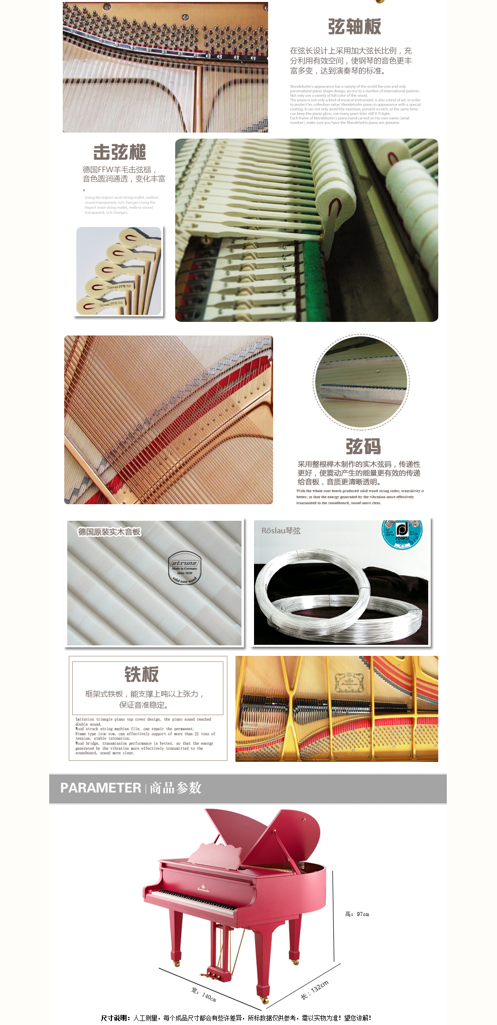 9.弦軸板:采用德國帝豪尼特(dehonit)進(jìn)口弦軸板,密度大,受力均勻,穩(wěn)定性更強(qiáng)
